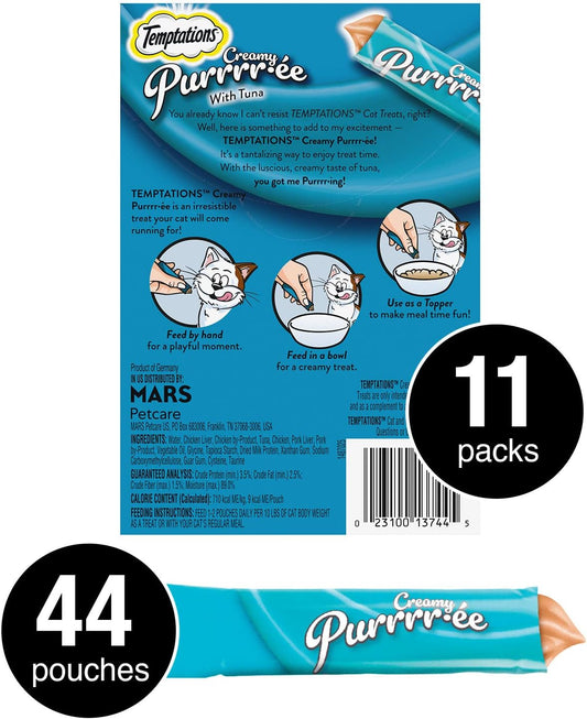 Creamy Puree with Tuna Lickable, Squeezable Cat Treats, 0.42 Oz Pouches, 4 Count (Pack of 11) - Total 44 Count